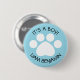 Ce bouton affiche un empreinte de patte blanc sur un arrière - plan bleu et le texte "C'est un garçon !" ainsi que le nom du bébé. Il s'agit d'un excellent article pour les baby showers à thème empreinte de patte, à thème chien, à thème chat ou animal.