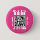 Bachelorette fête scannable QR code bouton en rose chaud avec le message "acheter la mariée une boisson" et le nom de l'application.