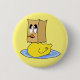 Pauvre petit canard laid. Bouton présente un arrière - plan jaune avec un canard jaune vif nageant sur l'eau bleue et portant un sac en papier marron sur la tête.