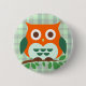 Chouette orange rétro sur une branche graphique. Arrière - plan vert plaid qui peut être supprimé. Chouette moderne douce et tendance.