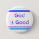 Dieu est bonne goupille coloful chrétienne de bouton de rayures. Choisissez la personnaliser pour changer la couleur ou la police d'arrière - plan.