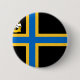 Round Button avec design avec un drapeau du comté historique de Caithness, en Ecosse, Grande-Bretagne; drapeau noir avec croix nordique bleue et jaune et illustration d'un navire avec un corbeau sur sa voile dans le treuil supérieur