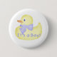 Un canard jaune avec un ruban bleu et un texte bleu qui le lit "est un garçon !" sur les boutons, le magnet, et plus de bébé.