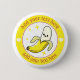 Mignonne, drôle banane jaune à moitié pelée avec un visage heureux. Le design est placé à l'intérieur d'un cercle blanc. Autour du bord, le haut et le bas sont des modèles pour ajouter votre propre texte.