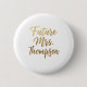 A stylish button pin for the bride-to-be. It features "Future Mrs. Thompson" in elegant gold foil script, perfect for announcing the engagement or wearing to the rehearsal dinner to celebrate the upcoming marriage.