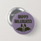 Montrez votre esprit d'Halloween avec cette épingle ou ce bouton mignon. Il présente une illustration de style dessin animé d'une chauve-souris volante avec un sourire aux dents et le message Happy Halloween contre un arrière - plan violet fumé. Fait une fête d'Halloween amusante en faveur ou petit cadeau.