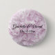 Customisez le joli Bouton de Mariage d'Hydrangea rose douce avec les noms personnels de la mariée et du marié et la date spécifique de la cérémonie de mariage. Ces élégants boutons de mariage botanique personnalisés présentent une photo florale adoucie d'une fleur d'hortensia rose.