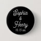 Ces élégants scripts typographie moderne boutons noir et blanc sont la faveur parfaite pour n'importe quel événement mariage! Personnalisez avec les noms des mariés et des mariés et la date du mariage.