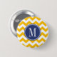 Badge Rond 5 Cm Motif Chevron jaune et bleu avec Monogramme