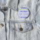 Une épingle de bouton de nom amusant décorée avec des bandes d'aquarelle horizontale peintes à la main dans les tons bleu périvent et vert citron avec blanc.