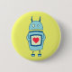 Bouton mignon robot avec dessin animé représentant un robot de dessin animé bleu maladroit tenant une plaque avec un coeur sur un arrière - plan jaune vif. Ce bouton robot convient aux enfants et geeks qui aiment les robots et les illustrations mignonnes.