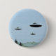 Aquarelle, stylo et encre, dessin au crayon de couleur de trois OVNI soucoupe au-dessus des montagnes.