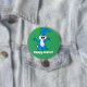 Joyeux Pâques mignon et excité bouton lapin de dessin animé. Un bon bouton pour quelqu'un célébrant Pâques. Il présente un lapin de dessin animé avec une expression excitée sur un arrière - plan vert.
