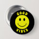Badge Rond 7,6 Cm Joyeux visage jaune Good Vibes noir