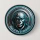 Bouton de science-fiction avec masque de robot bleu froid à effet métallique. Le texte dit "Montée de l'AI dominioN" mais vous pouvez le changer si vous voulez. C'est un clin d'oeil sur la façon dont l'intelligence artificielle pourrait mener à un avenir épouvantable où les machines ont une domination sur les humains.
