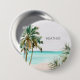 Badge Rond 7,6 Cm Palmier tropical Monogramme Plage Bleue Feuille