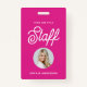 Ce badge d'identification de société dynamique et attrayant pour votre personnel est beaucoup plus sur la tendance et coloré que n'importe quel badge d'identification ancienne! Le design rose vif est doté d'un grand script rétro blanc et audacieux, avec place pour la photo, le nom et le titre de votre employé. Ce badge est suffisamment à jour pour votre personnel de divertissement ou d'événements musicaux ou de concert, de sécurité, d'artistes, de vidéo et de créateurs de contenu.