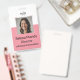 badge vertical rose personnalisé avec photo et nom de l'employé, texte personnalisable pour le numéro d'identification de l'employé, le rôle, le titre, l'emplacement ou d'autres détails clés. Ajoutez le logo de votre entreprise en haut. Le verso du badge comprend un champ de texte personnalisé pour les informations de retour ou d'autres détails importants. Cette conception permet une personnalisation facile, s'assurant que chaque badge est unique et répond aux besoins spécifiques de votre entreprise. idéal pour les infirmières et les employés de santé et de beauté.
