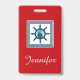 Design à thème nautique avec décoration de scène de voile en carrés rayés sur arrière - plan rouge avec nom