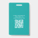 Ce badge d'identification de volontaire cool a un design moderne pour les cartes d'identité, avec un texte personnalisable sur le devant et un code QR personnalisable (sur le dos) et un script, tous sur un arrière - plan turquoise, pour une visibilité accrue. Il est simple mais polyvalent et peut s'adapter à des concerts sportifs ou à d'autres types d'événements. Disponible en variations de couleurs. Commandez dès aujourd'hui !