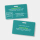 Des textes simples, un badge de conception avec photo de l'employé que vous pouvez customiser pour vous et vos employés. Les couleurs et la forme du design sont des textes jaune-vert et blanc sur arrière - plan vert turquoise et format paysage forme rectangle. Pour customiser ce badge, tapez le nom de votre entreprise ou de votre entreprise, l'adresse, le numéro de téléphone, le nom de l'employé, le titre de l'employé, le numéro d'identification de l'employé et téléchargez la photo de l'employé. Après avoir tapé des textes et téléchargé une photo, veuillez vérifier l'apparence sur les côtés avant et arrière. Si l'apparence vous plaît, vous pouvez passer votre commande maintenant. Si vous avez besoin de redimensionner et déplacer les textes et la photo pour tenir sur ce badge, s'il vous plaît changer dans l'outil de conception. Vous pouvez également effectuer d'autres modifications dans l'outil de conception en fonction de l'apparence que vous préférez, comme changer la couleur arrière - plan, la couleur de police et le style de police.