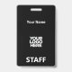 Personnalisez facilement ce badge de nom professionnel personnalisé sans photo, avec Scan Qr Code et logo d'entreprise. Un design d'entreprise simple en cool total noir et blanc entièrement personnalisable en tailles avant et arrière, sans-serif polices de base et moderne et un look professionnel et clair, parfait pour les employés de petite entreprise, patron, invités. Ces fournitures de badges d'identification d'entreprise sont disponibles avec cordon, clip métallique ou avec rétractable. Pas de commande minimum, mais économiser de l'argent et profiter de rabais Zazzle par plusieurs commandes!
