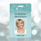 Girly Aqua Turquoise Blue Professional Entreprise Nom du travail, photo et titre du travail Faux Parties scintillant et Sparkle Ombre ID Photo Insigne commercial vertical. Cette conception est simple et facile à utiliser en changeant votre prénom et votre nom ainsi que votre titre de travail et votre plan de tête d'entreprise.