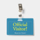 Cette conception de badge professionnel comporte le message « Visiteur officiel ! », ainsi qu'un nom de société personnalisable ou un autre message personnalisé. Il comporte également une bordure à une seule ligne avec des coins arrondis. Un badge comme celui-ci pourrait être utilisé pour indiquer qu'un visiteur ou un invité sur un lieu de travail est autorisé à y être. [~Z0000307]