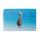 Pelikan stehend gegen einen hellen Himmel. Abgeschiedener Vogel mit weißem Kopf und grauem Körper. Beak verhindert seine Federn.