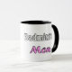 Badminton Züchter. Vrolijke mok. Kleuren: Dröhnen, mit Zwart. Leuk om als trotse moeder the dragen.