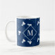 Cooler Badminton-Spieler mit Monogramm Tasse, gemustert mit einem Badminton-Schläger und Shuttleccks-Muster. Auf der Vorderseite befindet sich ein Monogramm-Bereich, in dem Sie Ihren eigenen ersten