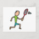 Badminton Spieler springen und spielen den Shuttleservice zurück auf die andere Seite des Hofes. Spaß Badminton Sportgrafik mit Spieler, Schläger und Shuttleservice alles in Handarbeit.