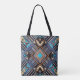 This is a design that radiates with layered diamonds and lines in teal, beige and black. It is both ancient geometry and modern vibe at once.
