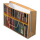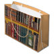 Geschenktasche mit Bildern von Büchern in einer Bibliothek.