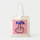 Beutel Peta Drehte eine Spritzennadel über dem Wort Peta .. Peta tötet jedes Jahr tausende Tiere