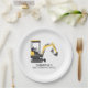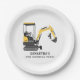 Perfekte Teller zum Geburtstag, für Kinder, die Liebe von Baufahrzeugen. Fügen Sie einen Namen und Party-Details hinzu, indem Sie auf den Button "Personalisieren" klicken. Der Bagger ist in den Farben Gelb und Dunkelgrau in lebhaften Farben gehalten.