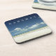 Ein wunderschöner Ausblick auf den Sandstrand von Harbour Island auf den Bahamas, der auf einem Set Souvenir-Untersetzer gedruckt ist.