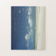 Eine schöne Aussicht auf den Strand auf der Insel Harbour in den Bahamas, die auf einem Rätsel gedruckt wurde.