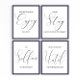L'ensemble d'affiches murales de salle de bain est créé par szdesign. Il s'agit d'un ensemble pour le mur de la salle de bain seulement en noir et blanc simple. Chaque affiche a un message différent mais tous unis ont une tâche unique de vous faire une même bonne influence pendant que vous êtes à la salle de bain. La première photo (photo de couverture) n'est qu'à des fins promotionnelles, et 4 cadres ne sont pas inclus dans le set. Si vous choisissez Aucun pour encadrer les affiches que vous payez seulement pour les affiches. En coque vous achetez avec des cadres vous payez les cadres aussi. N'hésitez pas à me contacter pour toute aide concernant ce design.
