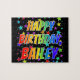 Dieses lustige, aufregende, zum Geburtstag kommende Puzzle-Design hat die Botschaft "HAPPY BIRTHDAY, BAILEY" mit den Charakteren, die ein farbenprächtiges Regenbogenspektrum inspiriert haben, zusätzlich zu einem lebendigen Sternenhintergrundmuster. Ein lebendiges Rätsel wie dieses könnte eine lustige Art sein, Geburtstagsgrüße an jemanden namens Bailey zu schicken. [~Z0000468]