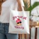 Diese Tasche ist ein spielerisches Design mit einem niedlichen Kuchen mit Sonnenbrille, begleitet von der humorvollen Phrase "You Bake Me Crazy". Zeigen Sie Ihre Liebe für das Backen auf unterhaltsame Weise an,