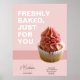Fügen Sie Ihrer Bäckerei eine süße und stilvolle Touch mit diesem Bakery Monogram Logo Cupcake Foto Pink Poster hinzu. Es ist als dekoratives Display konzipiert und verfügt über ein individualisierbares Monogramm-Logo mit Platz für Ihre Initialen, Ihren Firmennamen und Ihre Tagline sowie über ein köstliches Foto für den Kuchen, um die Persönlichkeit Ihrer Marke zu demonstrieren. Ideal, um ein zusammenhängendes, auffälliges Ambiente an Märkten, Pop-Ups, Desserttischen oder Ihrem Schaufenster zu schaffen. Eine schöne Art, Wärme und Branding zu jedem Bäckereiraum hinzuzufügen!