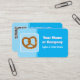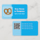 Eine gesalzene Drehung Brezel Brot steht im Mittelpunkt dieses stilvollen Designs, das sich ideal für eine Bäckerei, einen Lebensmittelservice oder ein Catering-Unternehmen eignet. Ihr QR-Code und Ihre Details können auf der Rückseite hinzugefügt werden. Wenn Sie ein anderes Logo haben, können Sie das geknotete Laibmotiv ersetzen und Ihre eigene Grafik erscheint stattdessen auf der Vorderseite.