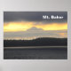 Der Blick auf den Vulkanberg Baker. Im Cascade Range nahe Bellingham, Washington gelegen. Es wird auch Text mit "Mt. Baker" angezeigt. Aus einem Foto des Künstlers. Geboren als Koma Kulshan (weißer Satz) eines amerikanischen Ureinwohnerstamms dominiert der Baker die Skyline von Bellingham, Washington und Vancouver, British Columbia. Mit 1000 Metern ist es der dritthöchste Berg des Washingtoner Staat und der fünftgrößte in der Cascade Range. Es ist sichtbar von großen Teilen des Greater Victoria, Greater Vancouver, und im Süden von Seattle (und an klaren Tagen Tacoma). An kalten, klaren Wintertagen können die Einwohner an den stark ansteigenden Dampflaumen aus dem Sherman-Krater alarmiert werden. Dieser scheinbare Anstieg der Atmungsaktivität tritt aufgrund der Kondensation von Dampf in kalter, ruhiger Luft auf. Der Berg, ein isolierter Stratovulkan, ist der am stärksten vergletscherte der Vulkane der Cascade Range nach dem Berg Rainier. Der Berg Baker Ski Area Set ist der Weltrekord für den aufgezeichneten Schneefall in einer Single-Saison - 1140 in. Der Baker hat den zweitstärksten thermisch aktiven Krater im Kaskadenbereich nach dem Berg St. Helens. Während der Vulkanismus hier seit etwa 1,5 Millionen Jahren anhält, ist der gegenwärtige Gletscherkegel wahrscheinlich nicht mehr als 140.000 Jahre alt und möglicherweise nicht älter als 80-90.000 Jahre. Ältere vulkanische Bauwerke haben sich aufgrund des Gletschers größtenteils verflüchtigt. Der Berg Baker war in den letzten 10.000 Jahren sehr aktiv und ist 13 Mal in der aufgezeichneten Geschichte ausgebrochen. Der letzte Ausbruch war 1880. In den Jahren 1975-6 kam es zu einer Dampffreisetzung, aber es folgte kein Ausbruch. Die erste schriftliche Aufzeichnung des Berges stammt aus dem Spanischen. Der spanische Entdecker Gonzalo Lopez de Haro kartierte ihn 1790 als den Gran Montaña del Carmelo (Grosser Berg Carmel). Der Entdecker George Vancouver umbenannt den Berg in den 3. Leutnant Joseph Baker von HMS Discovery, der ihn am 30. April 1792 sah.