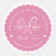 Backen Business Utensilienaufkleber mit rosa Hintergrund und zwei weißen Herzen.