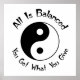 All Is Balanced - You Get What You Give - white poster with black lettering and yin yang symbol.