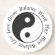 Balance - Arbeits-Spiel-Plan-LiveLiebe wachsen Sie - Sandstein-Untersetzer mit schwarzer Skriptbeschriftung und yin Yang-Symbol.