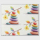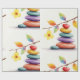 The image shows a watercolor painting of balanced stones, also known as a "stone tower" or "cairn", with a branch and colorful leaves. Balanced stones symbolize balance, peace, and harmony.