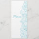 Plage moderne simple deux côtés mer vagues style plage accueil de mariage menu dîner d'accueil en bleu aqua et blanc immaculé. Idéal pour les mariages côtiers et de plage. Uniquement conçu par Sarah Trett.