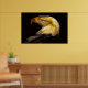 Ein atemberaubender Ausblick auf einen Bald-Adler mit Power, der aus ihm glüht, und einen schwarzen Hintergrund.Dies ist ein wunderschönes Foto auf diesem Poster